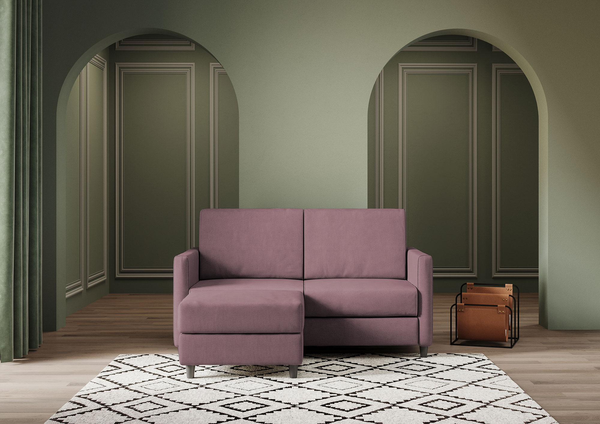 Divano Karay 2 posti (due sedute da 60cm) + pouf misure esterne L.138 P.155 colore prugna