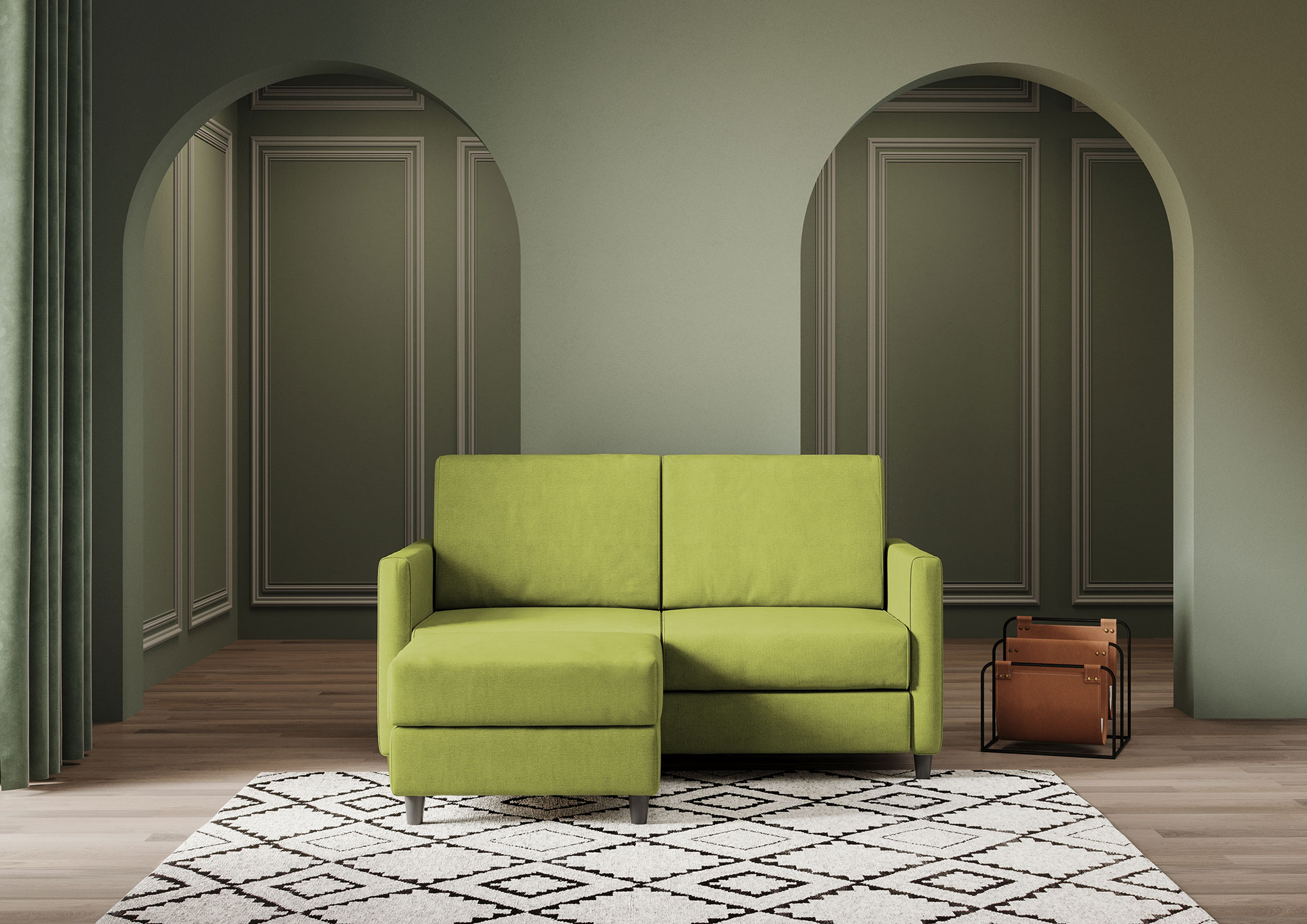 Divano Karay 2 posti (due sedute da 60cm) + pouf misure esterne L.138 P.155 colore verde