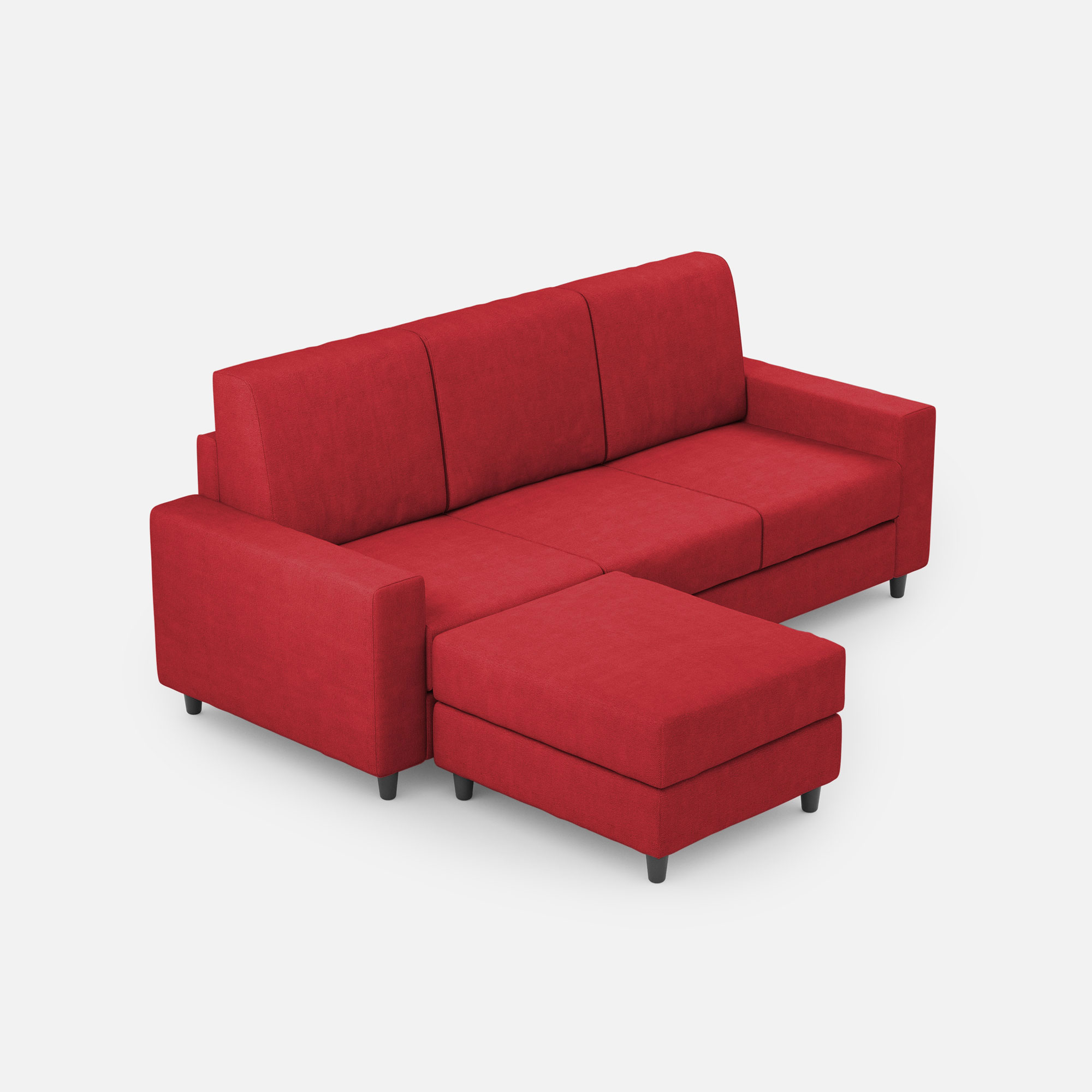 Divano Sakar 3 posti (tre sedute da 60cm) + pouf misure esterne L.208 P.155 colore rosso