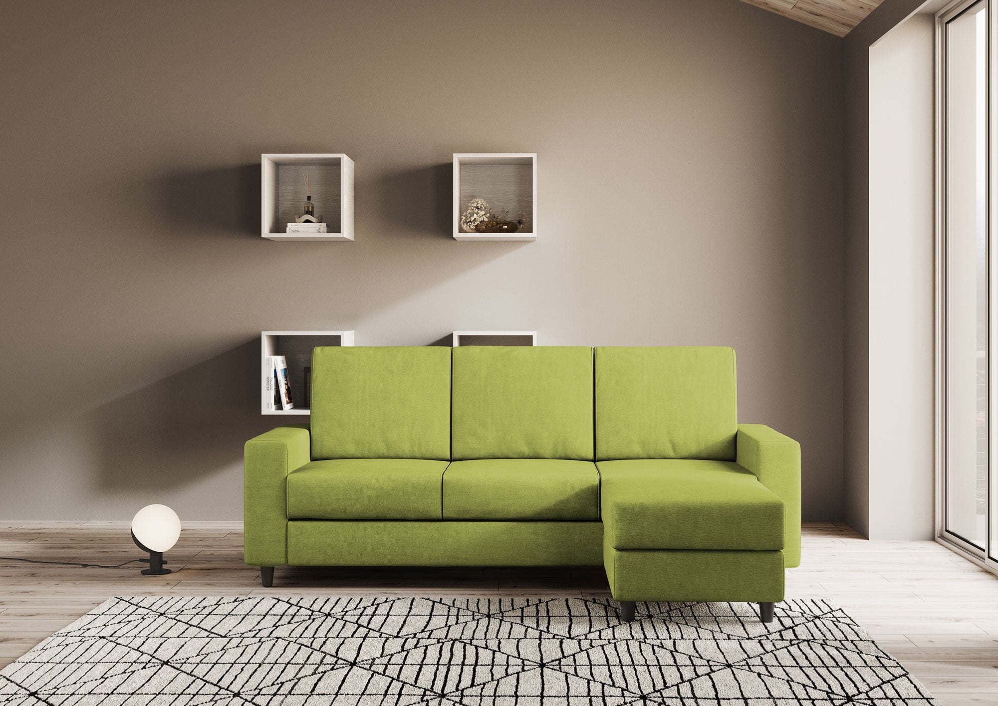 Divano Sakar 3 posti (tre sedute da 60cm) + pouf misure esterne L.208 P.155 colore verde