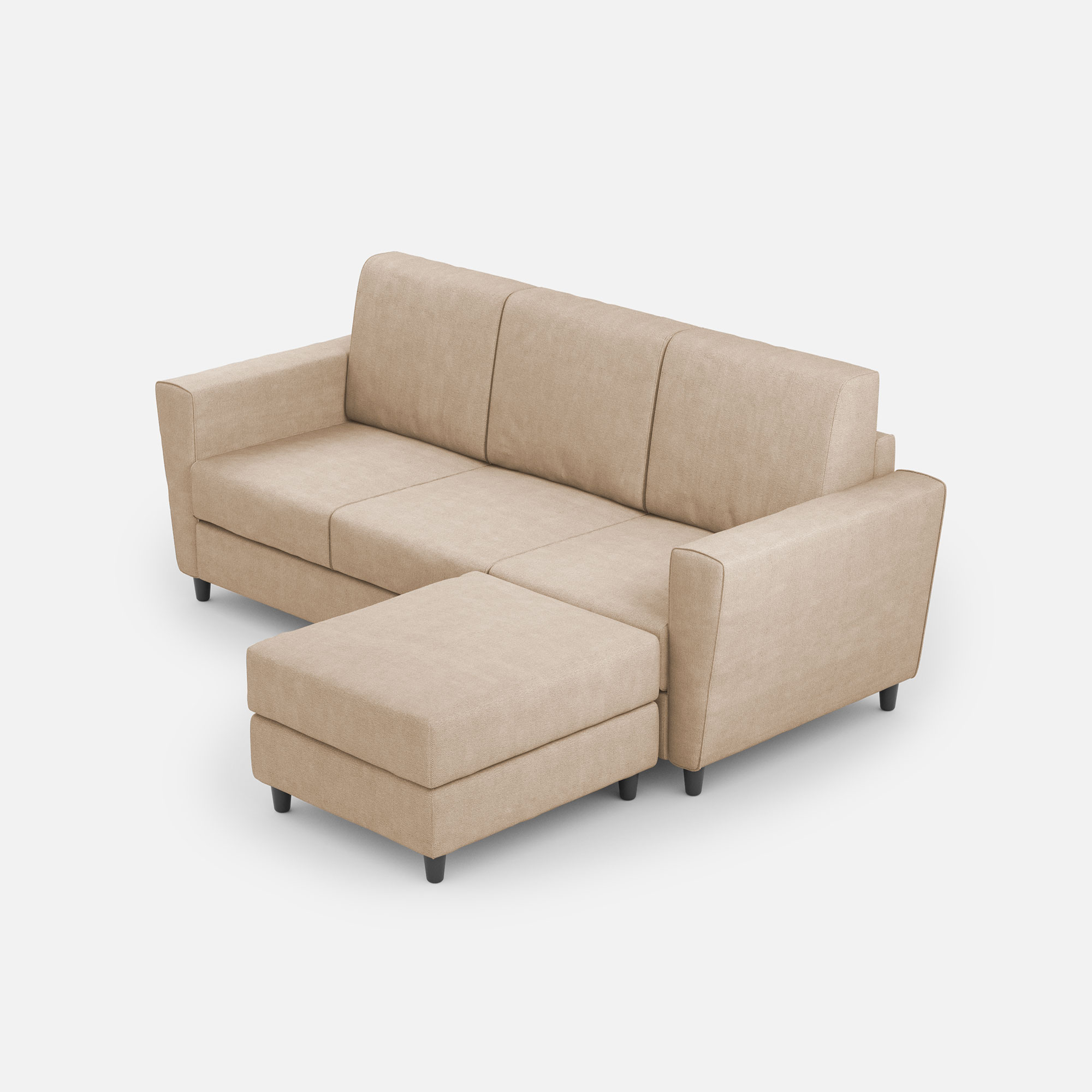 Divano Yasel 3 posti (tre sedute da 60cm) + pouf misure esterne L.212 P.155 colore beige