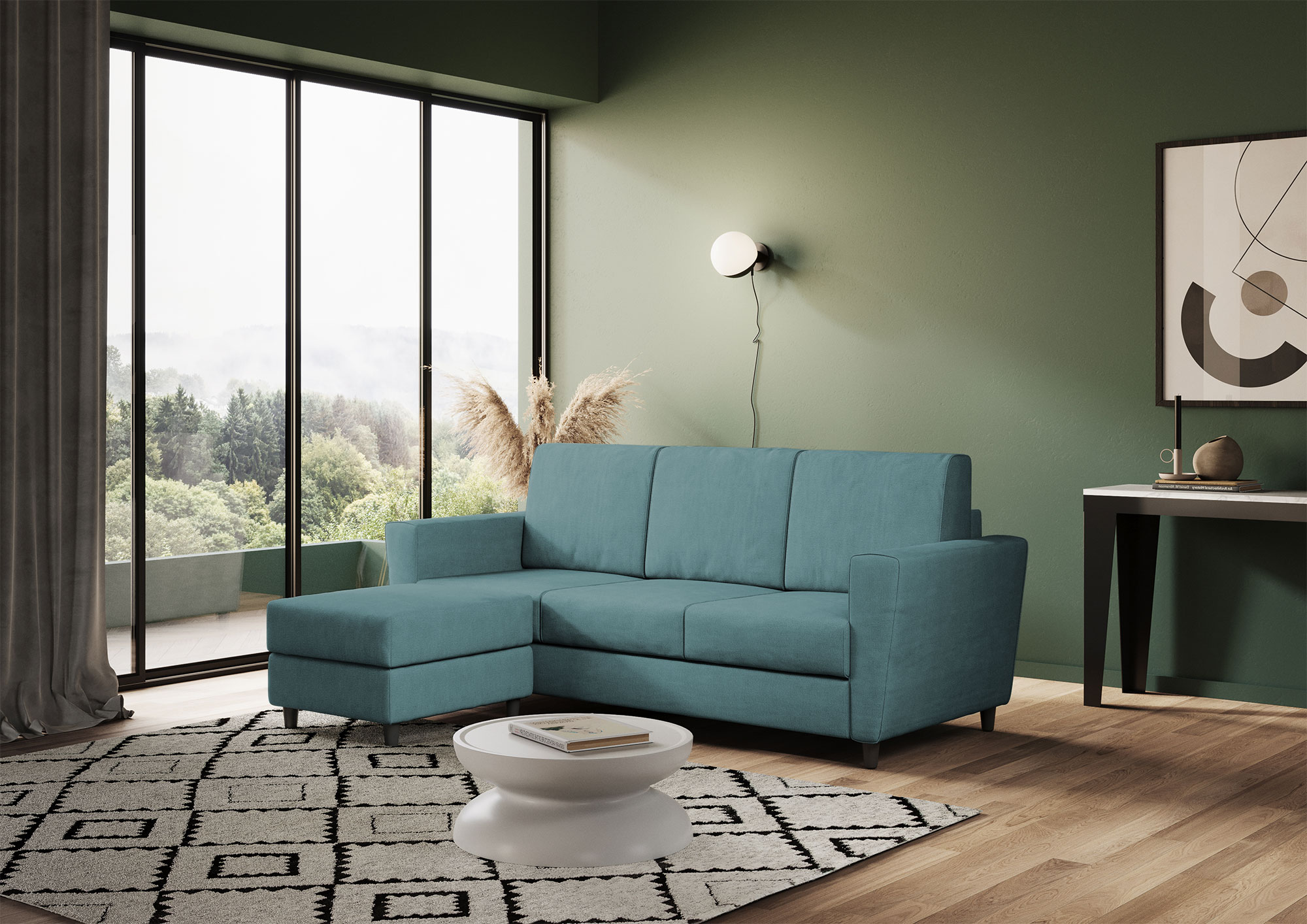 Divano Yasel 3 posti (tre sedute da 60cm) + pouf misure esterne L.212 P.155 colore petrolio