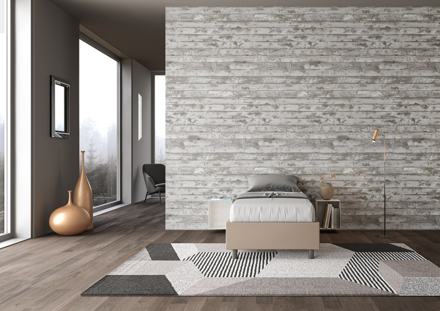 Letto singolo senza rete imbottito 80×200 similpelle tortora Azelia